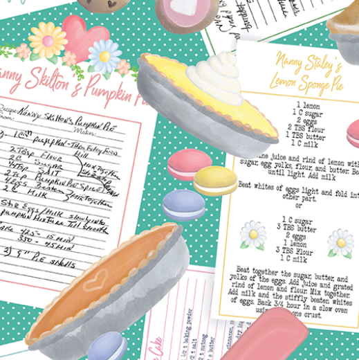 Nana's Recipe Jade Quilt Fabric - Benartex 12826-45