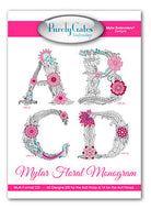 Mylar Floral Monogram is a beautiful monogram collection created with detailed floral design with a touch of Mylar for a fabulous shine. The full alphabet plus 14 floral designs makes this machine embroidery collection one that has your initials on it, order yours today!