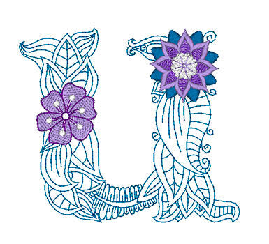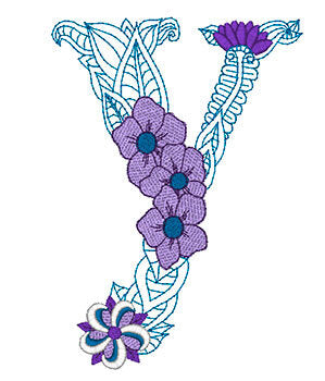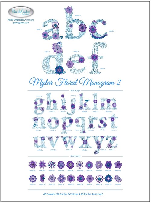 Mylar Floral Lower-Case Monogram 2 by Embroidery Design Purely Gates