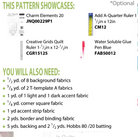 Introductory paper piecing pattern, includes fabric requirements and instructions for project shown. REQUIRES (purchased separately) Charm Elements 20 paper piecing templates and instructions by Quiltworx.com.
