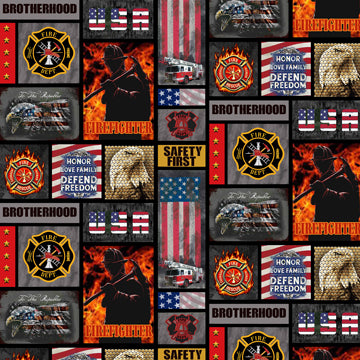 Firefighter Block Cotton BLACK A/O Cotton Benartex 1339FF