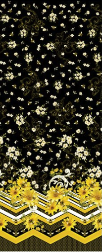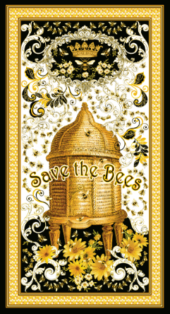 Buzz Worthy Black/Gold Border Fabric #9973M12B