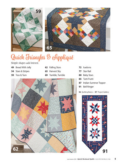 Quick Quilts. These gorgeous designs are perfect for quilt retreats, quick gifts, or satisfying weekend projects. Our top designers have maximized the wow factor while minimizing the time investment.