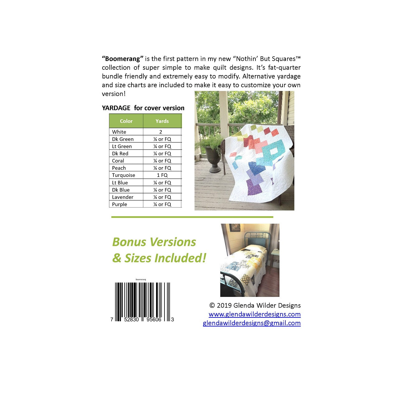 Boomerang Quilt Pattern by Glenda Wilder - 752830956063.