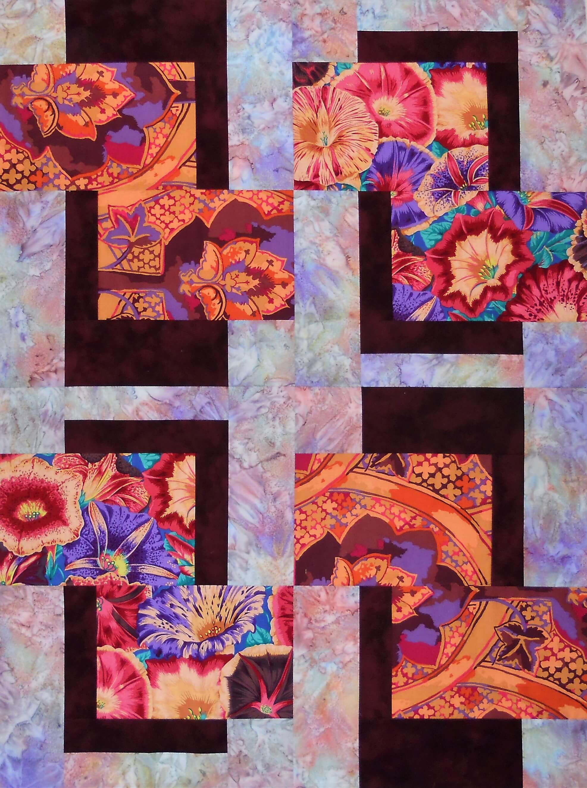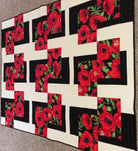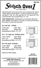 Crib 36” x 48” (cover), Large Lap 54” x 72” (cover) and Queen 90” x 96”. Blocks are 12” x 18” and we have included directional fabric tips.