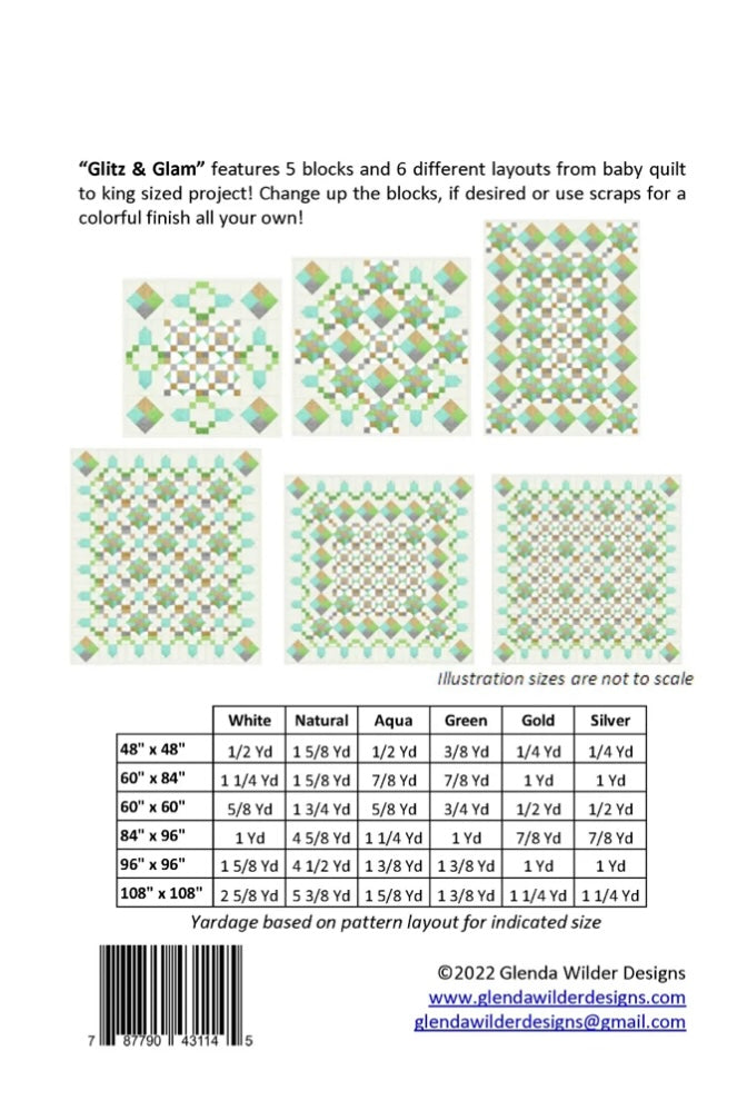 Glitz & Glam Quilt Pattern - 6 pattern sizes - Glenda Wilder Designs