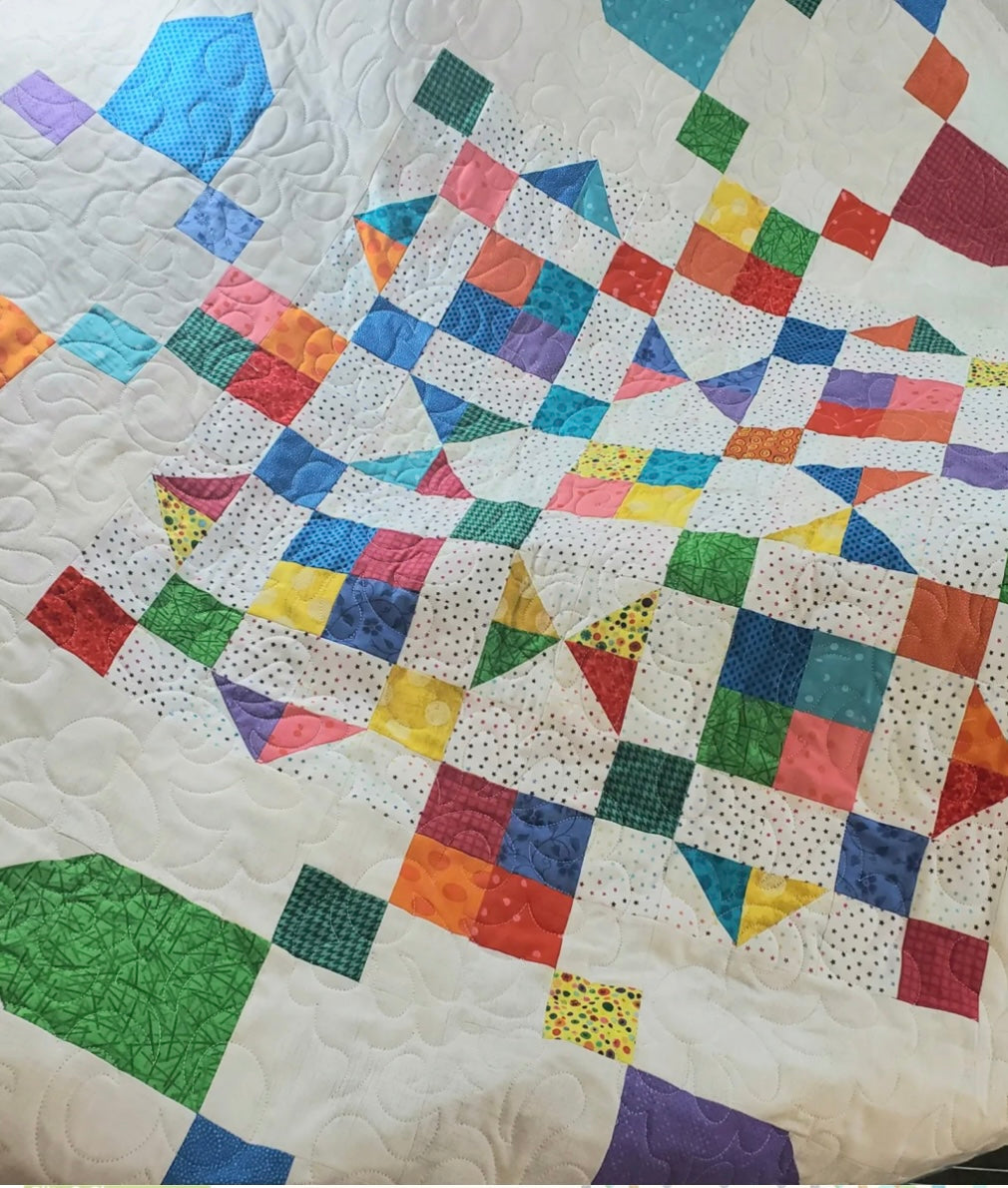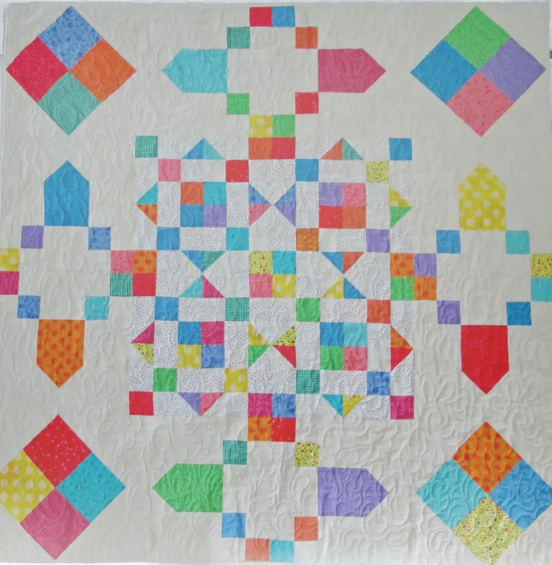 Glitz Glam features 5 blocks and 6 different layouts, suitable for a baby quilt or king-sized project! You can change up the blocks if desired, or use scraps for a colorful finish all your own!
