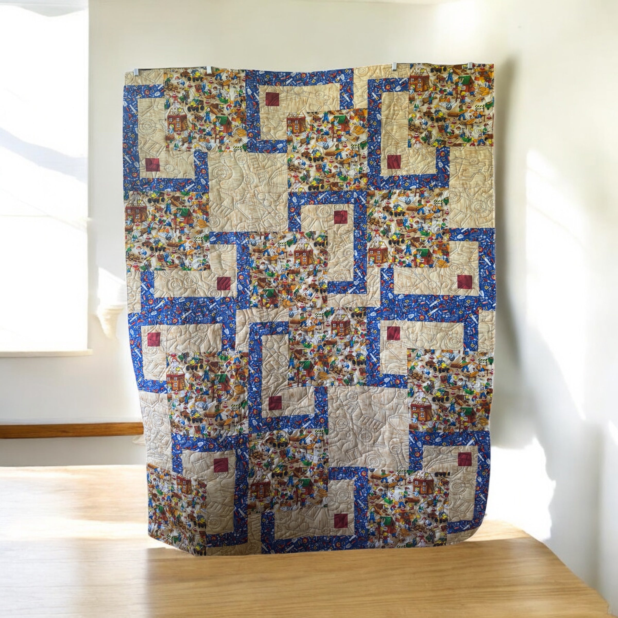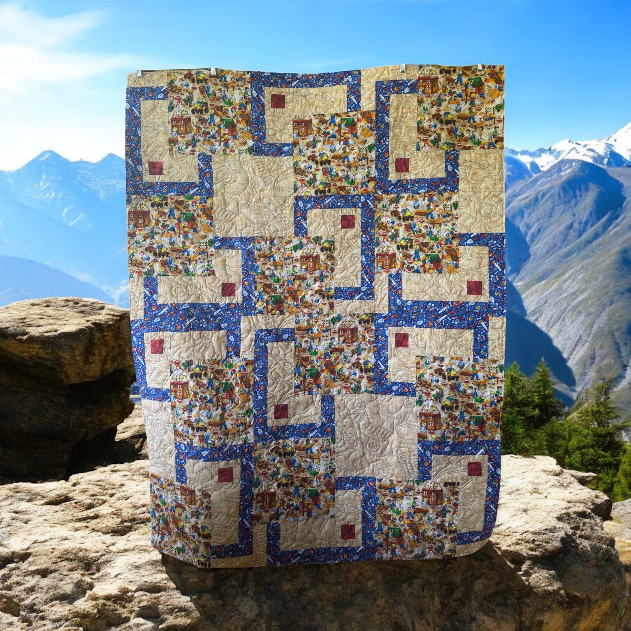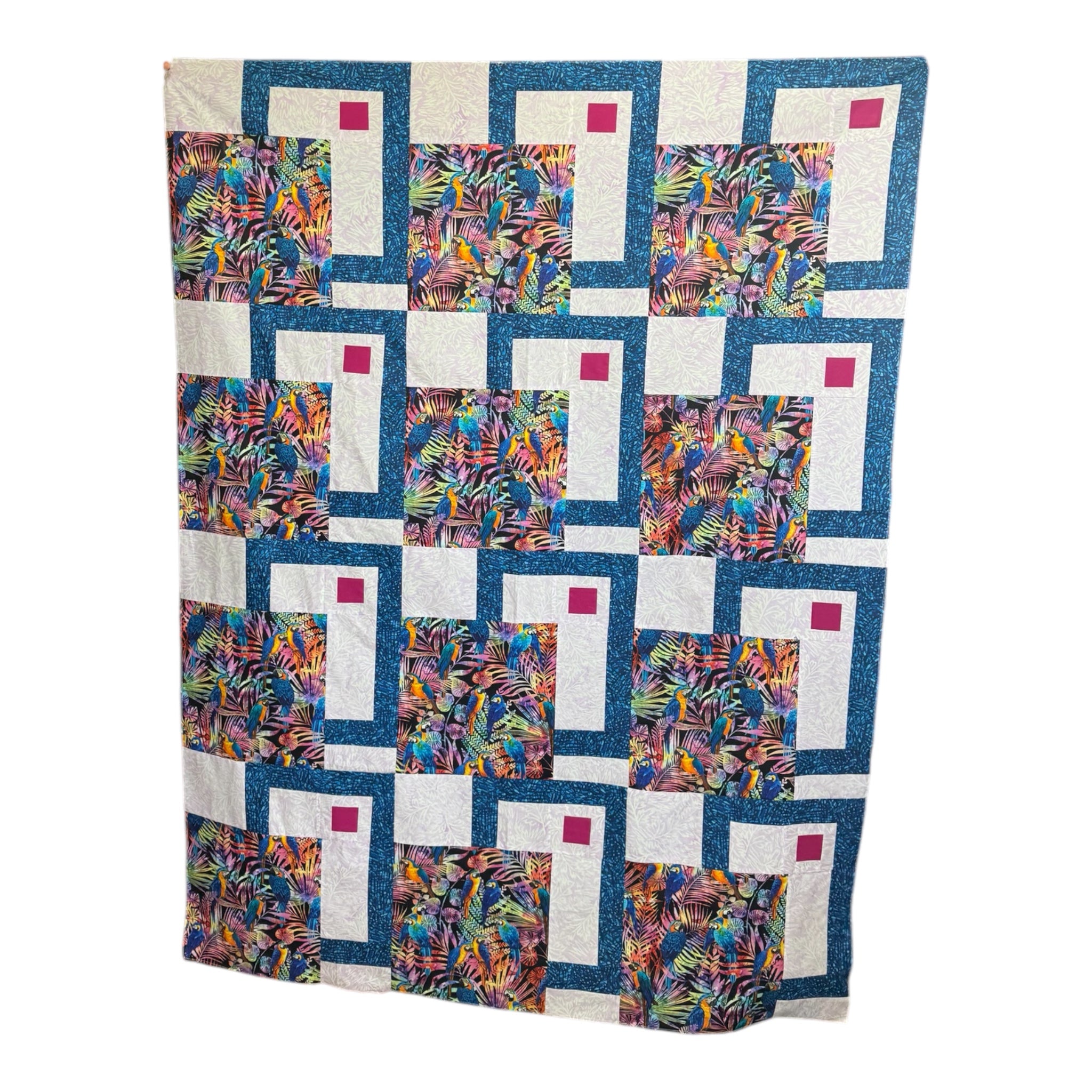 Square centers in rectangular frames with a small accent are rotated for bold looks. One center fabric or many in two block sizes and 5 quilt sizes from wall to queen. Quilts: 46" x 46", 54" x 72", 90" x 108", 40 ½" x 54"and 54" x 67 ½".