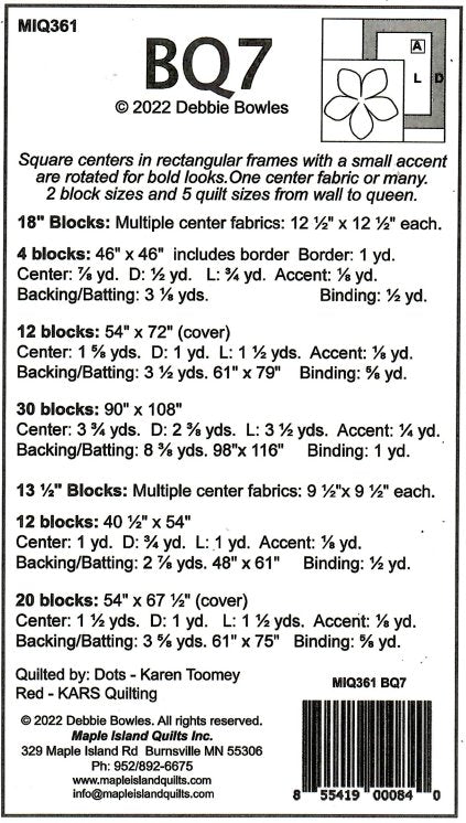 BQ7 Quilt Pattern - Designed by Debbie Bowles