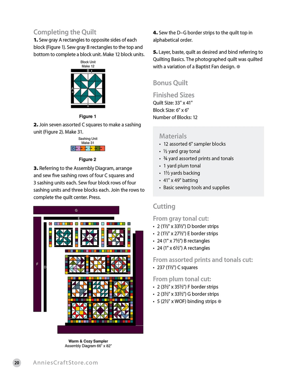 Mix and match and take advantage of everything this book has to offer! This book includes 12 sampler blocks in two sizes (12" and 6" blocks) used in 8 unique settings. The great part is you can mix and match blocks in the quilt or use your favorite blocks! This book is sure to be your go-to when you want to make something special.