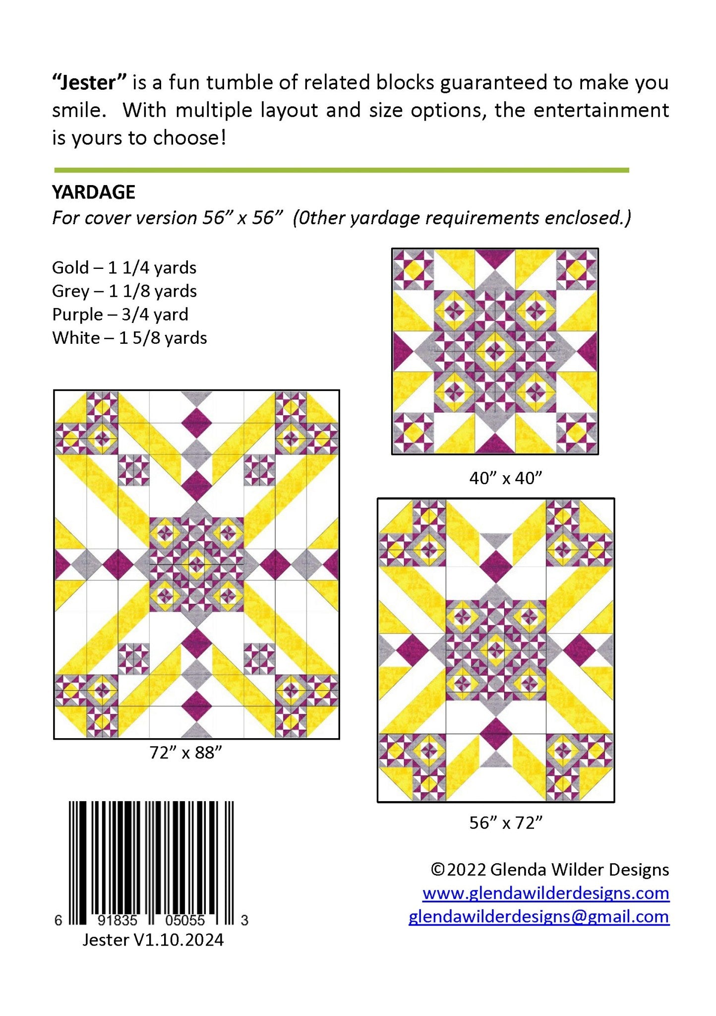 Jester Quilt Pattern - Moderns Quilt Pattern Multiple Size Variations