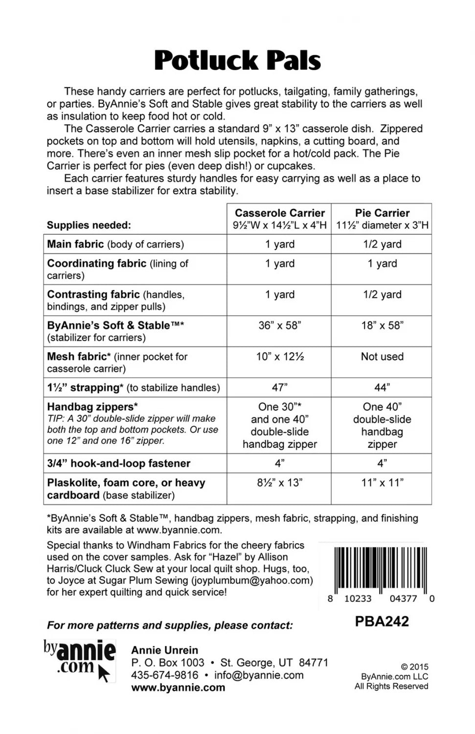 Potluck Pals Pattern, Casserole Dish and Pie Holder Pattern Annie's Attic Quilting #PBA242