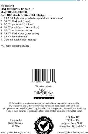Oops! Quilt Pattern # PM830