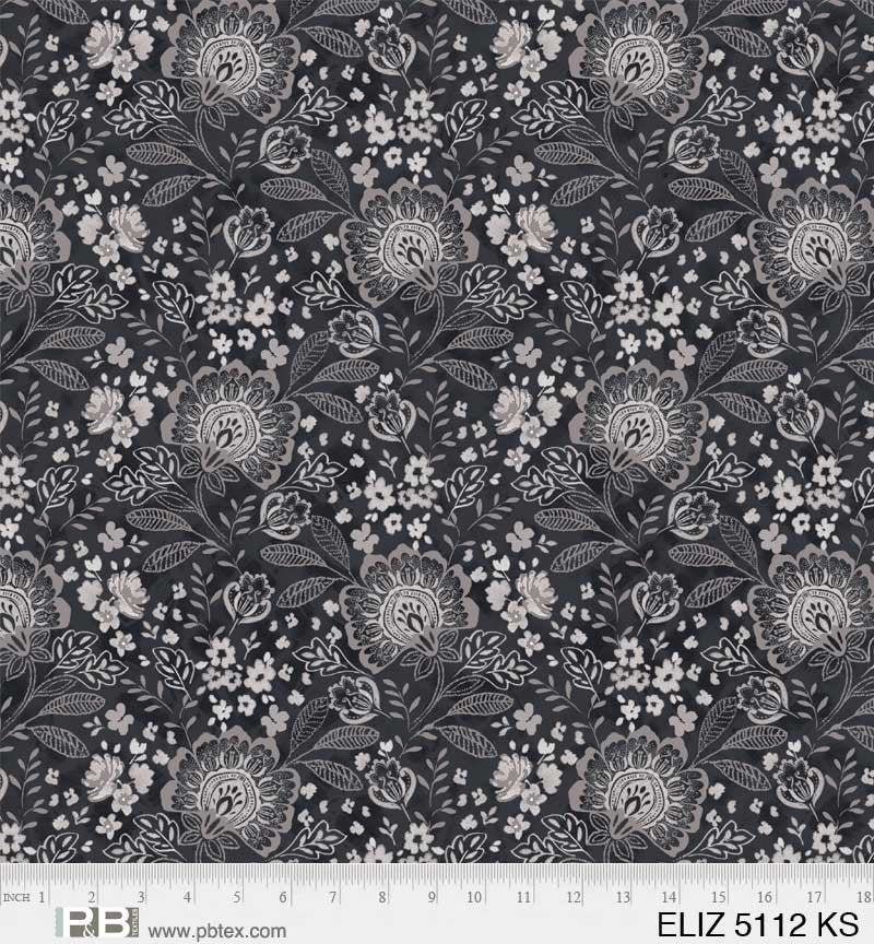 Gray Elizabeth 108in Wide Backing Jacobean Allover ELIZ5112-KS - P & B Textiles