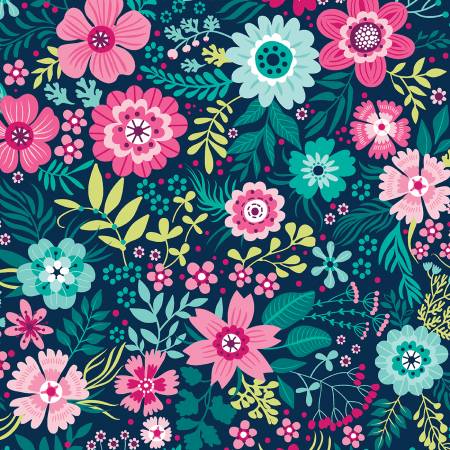 108" Secret Garden Wallflowers Wide Quilt Back Navy #13693W-11
