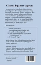 Create a one of a kind apron using a 5" charm pack and coordinating fabric. The pattern is very detailed and explains each step thoroughly, but some sewing experience is required. The first picture is the apron shown on the pattern.