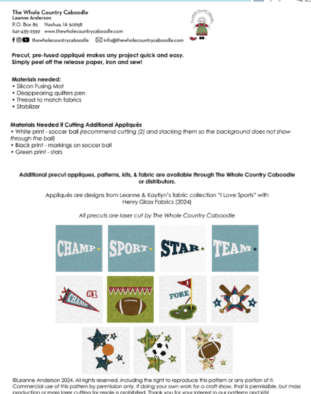 Makes a great addition to a sports pennant, pillow, or quilt!