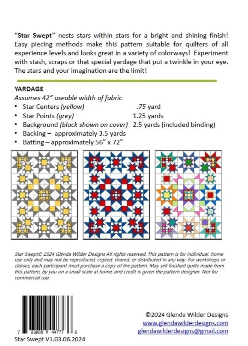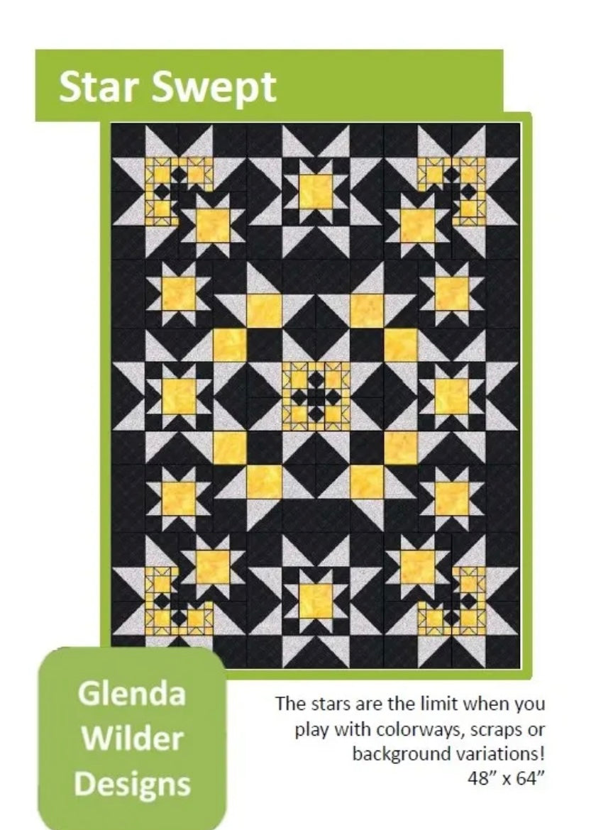 Star Swept Modern Quilt Pattern - Finished Size 48”-64” - Designed By Glenda Wilder
